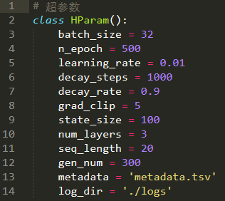 训练所用的数据路径以及生成新文本所用的预热数据请在Char_RNN.py文件中调整: