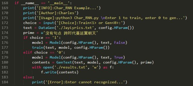 在cmd窗口运行Char_RNN.py文件并根据提示输入相关信息即可。