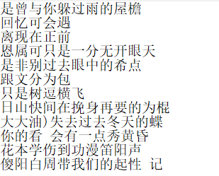 当然你完全可以找其他文本作为训练语料来生成风格各异的“文章”,“歌词”等等~~~